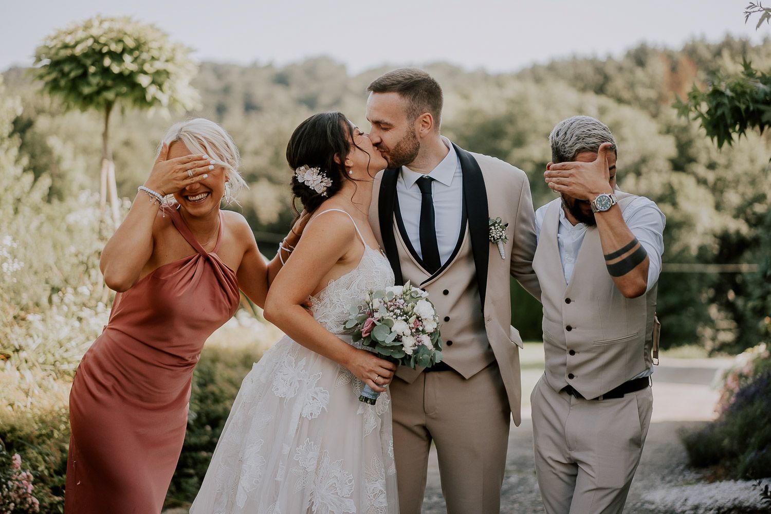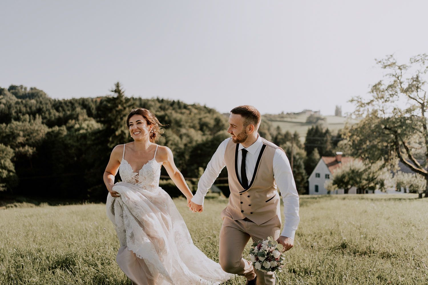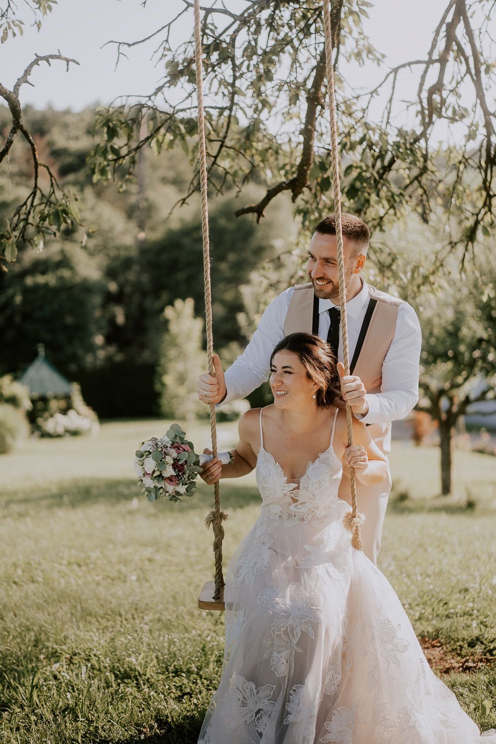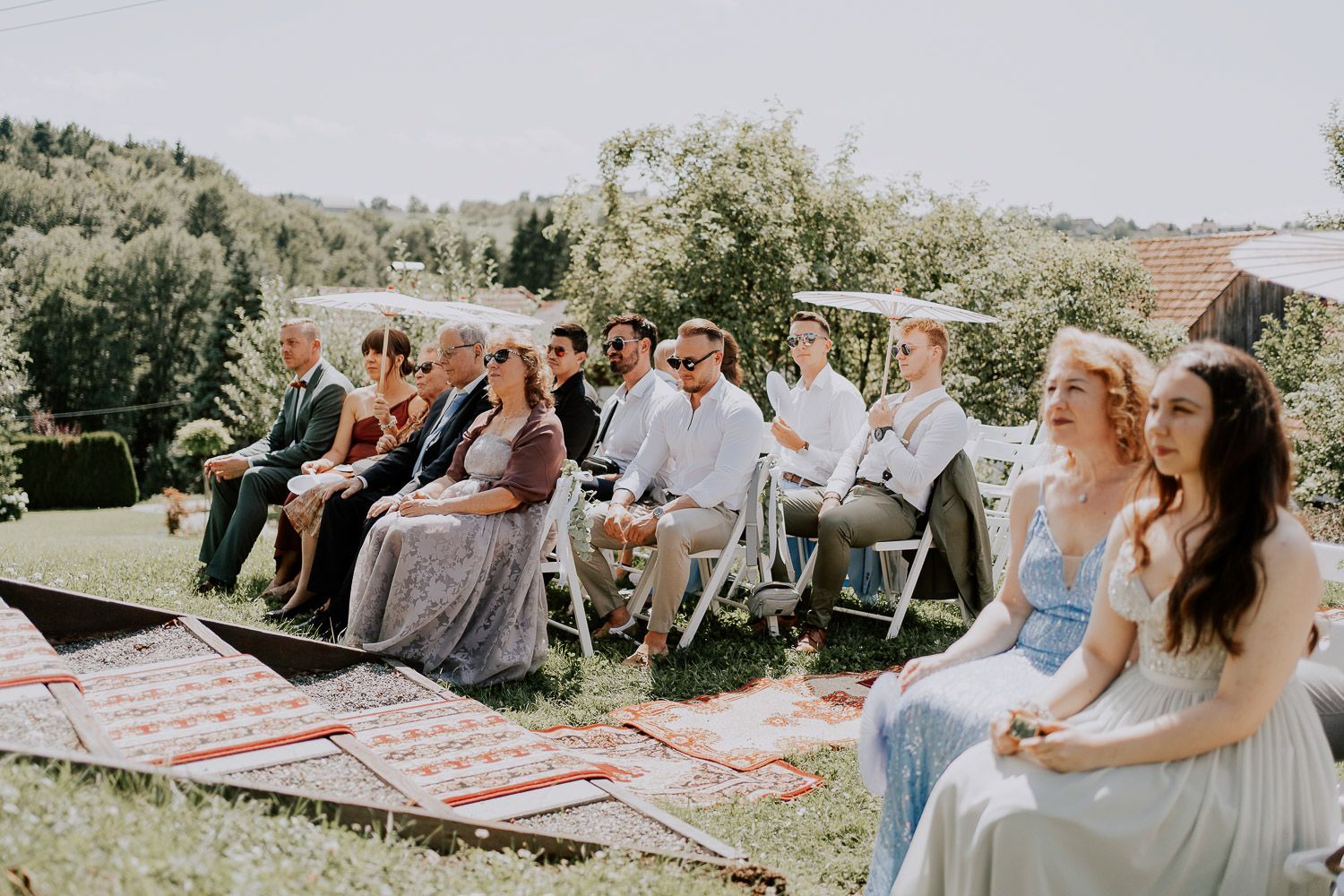 Melissa und Peter haben ihren großen Tag im wunderschönen Ambiente des Weinguts Holler gefeiert – eine perfekte Mischung aus rustikal und elegant. Die Trauung fand unter einem schattigen Baum statt, liebevoll dekoriert mit türkischen Teppichen, die Melissas Wurzeln widerspiegelten. Für die anschließenden Paarfotos sind wir mit einem Golfcart durch den Weingarten gedüst und haben entspannte Momente der Zweisamkeit eingefangen. Danach wurde in der charmanten Scheune weitergefeiert und der Abend endete mit viel Lachen, , ausgelassenen Tanzen und guten Gesprächen - dem perfekten Ausklang für einen lauen Sommerabend.